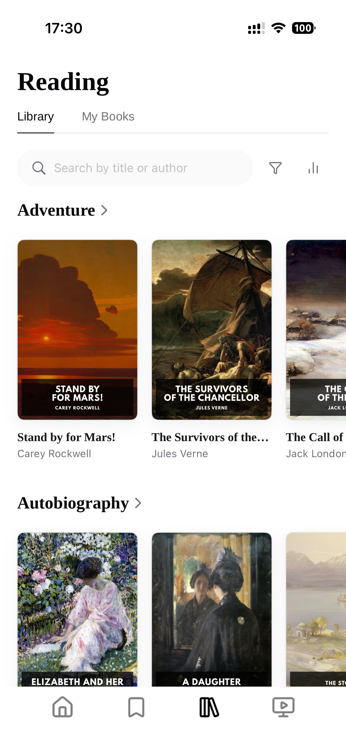 Dive into 1,000+ curated English classics organized by subject and reading level, or upload any EPUB to bring your own library.