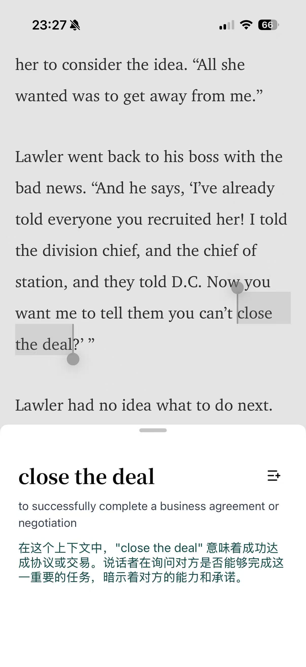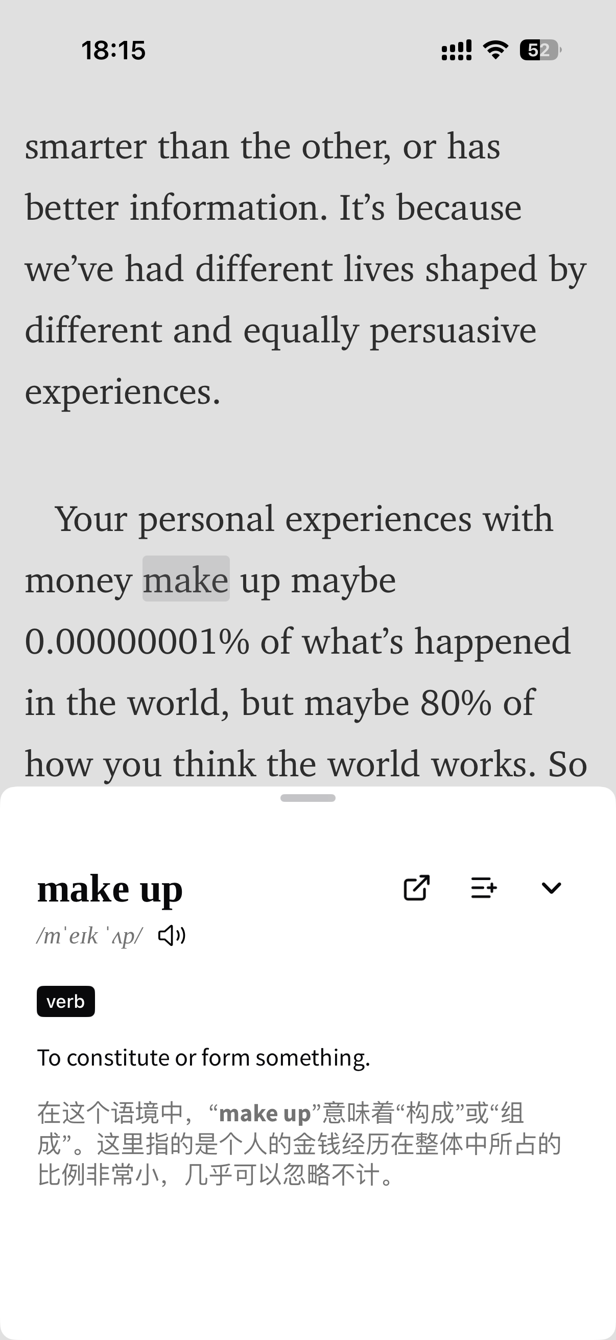 Tap any word for its precise meaning in context, or long-press to catch phrases and expressions.