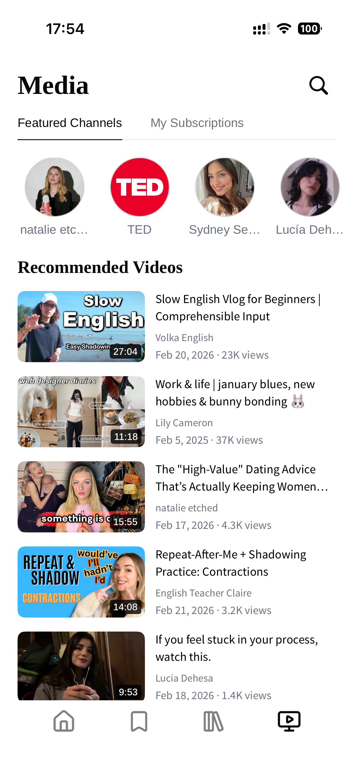 Subscribe to your favorite YouTube channels and watch with interactive bilingual subtitles.