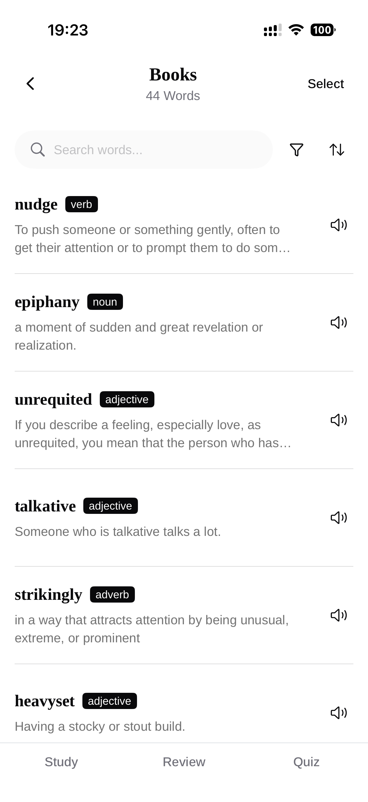 Every word comes back with the sentence you saved it from. Flashcards with smart scheduling surface the right words at the right time.